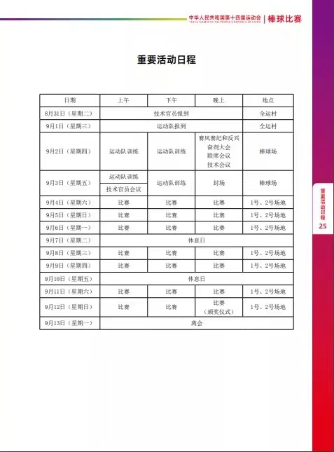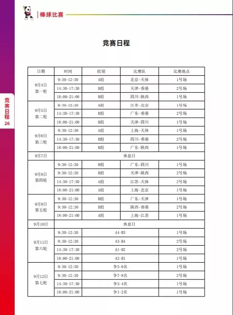 男子棒球竞赛日程