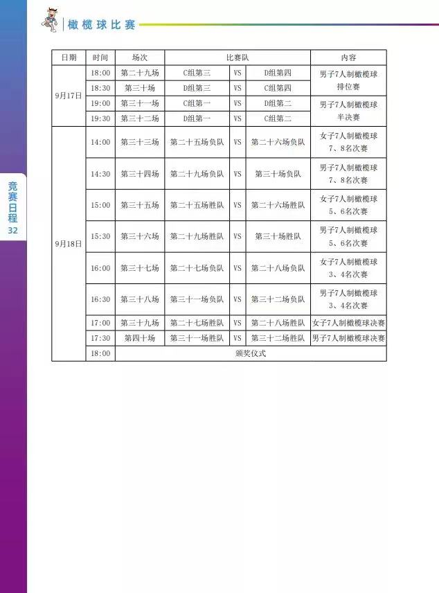 橄榄球项目比赛将于9月16日-9月18日在此开赛。