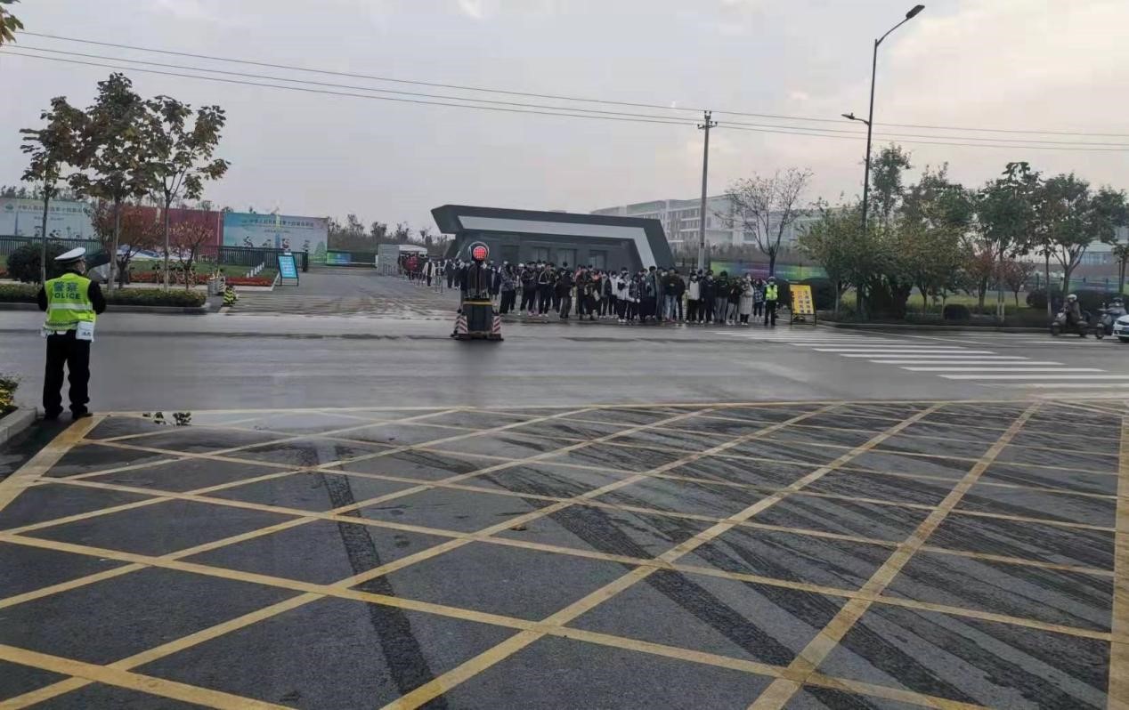 鄠邑校区管委会积极协调鄠邑区交警部门,在道路两端安装提示牌、地面铺设震荡线、增设临时交通灯,培训beat365安保人员利用临时红绿灯对道路管控,尤其是上下课高峰时段,做好东西区交通道路管控,确保师生东西区通行安全。