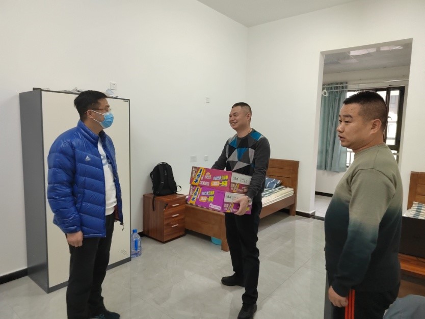 28日-29日,张卫国带领管委会逐一排查校区住宿工勤人员,保障校区完全切断与外界接触。全面对校区大门、食堂、公寓、场馆、校区环境等区域进行了检查,并现场指导整改。同时,代表学校看望了连续奋战在一线的物业、安保、基建、网络、二级学院、校医院人员,并派送慰问品。