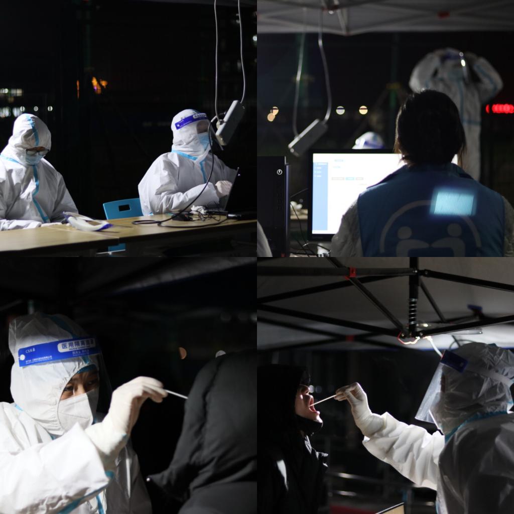 今日核酸检测从下午3时开始,直至晚上8时结束。无论是白日还是黑夜,医护人员与青年志愿者们始终迎着严冬奋战在第一线。