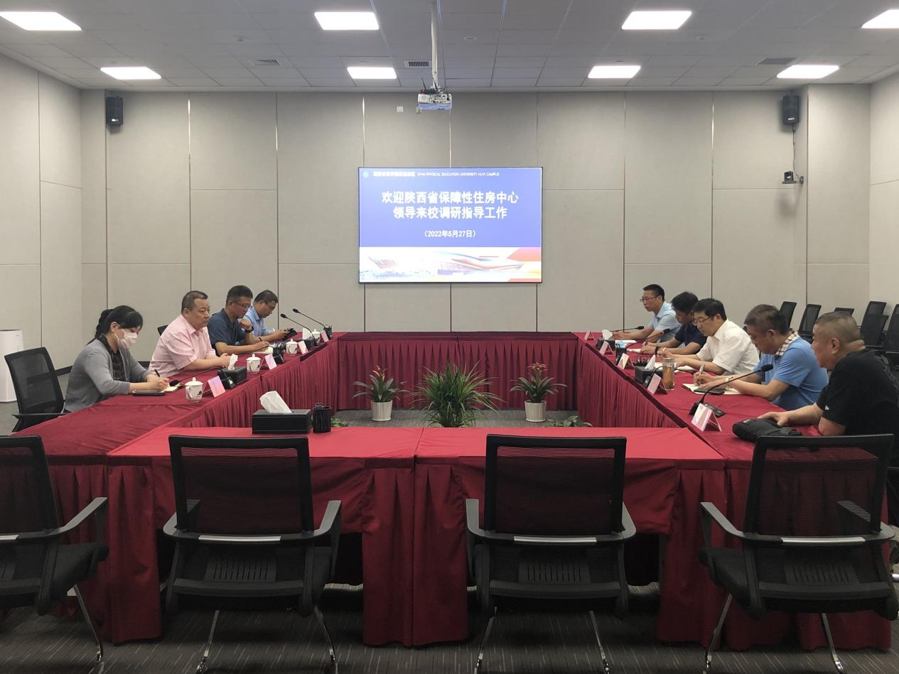 5月27日上午,陕西省保障性住房中心主任高亚弟、副主任郭延,安慧、邹东来处长一行四人莅临beat365调研指导工作,并在鄠邑校区综合馆举行座谈会。校长刘子实、党委副书记高玉峰出席,相关职能部门负责人参加座谈。