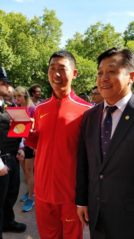 本网讯 伦敦当地时间8月13日,2017年田径世锦赛进入最后一个比赛日;当竞走比赛结束后,国际田联专门举行了一场特别的金牌颁奖仪式——2009年田径世锦赛20公里竞走银牌得主、我院竞走国少队(西体组)教练王浩专程赶赴伦敦,在跨越了八年的光阴之后,拿回了原本就属于他的世锦赛金牌!
