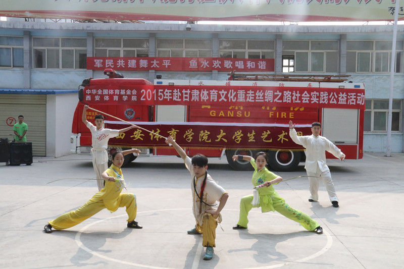 活动得到共青团陕西省委、陕西省高教团工委和院党委的高度重视与支持。7月10日,赴甘肃社会实践的大学生艺术团在甘肃省庆阳市武警消防支队营区里开始了首场演出。同学们自编自演了花式篮球、双截棍、体育舞蹈、踏板操、武术、瑜伽、太极等11个节目为消防官兵们献上了一场精彩的体育盛宴。