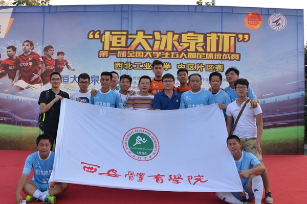 本网讯 6月17-18日,由团中央学校部、全国学联秘书处主办,恒大冰泉矿泉水集团协办,西北工业大学承办的“恒大冰泉杯”首届全国大学生五人制足球赛挑战赛中区赛在西北工业大学长安校区进行。本次中区赛共有来自陕西、河南、湖北、湖南、山西等5省的16支高校代表队参加比赛,我院代表队过关斩将,以不败战绩夺得冠军,将代表中区参加在广州由广州恒大淘宝俱乐部举行的全国总决赛。