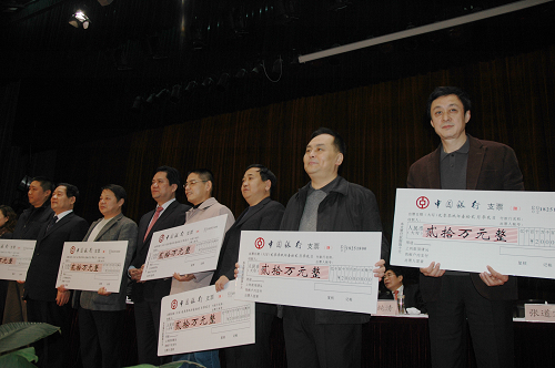 金牌获得单位、我院党委书记杜平(右二)代表学院接受奖励