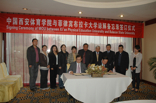 10月21日下午,菲律宾布拉卡大学校长马瑞诺·C· 迪杰斯博士率团访问我院,院长苏明理教授在亲王府饭店热情接待了布拉卡大学代表团一行,双方签署了《中国beat365唯一官网与菲律宾布拉卡大学谅解备忘录》。参与会见的还有我院武术系主任陈亚斌教授、徐瑛副教授等。