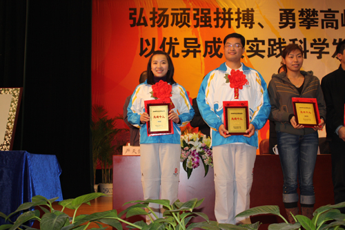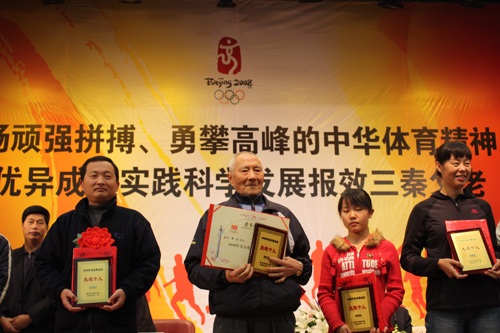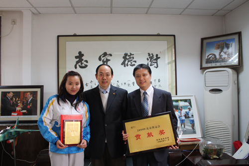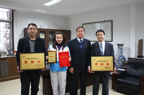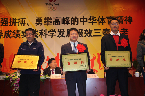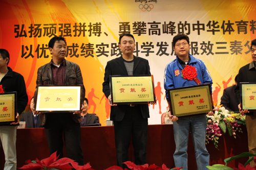 本次大会,对在北京奥运会上有特殊贡献的集体和个人给予了表彰,陕西省体育局为我院以及艺术系、田径教研室颁发了“2008北京奥运会贡献奖”。曾参加柏林奥运会96岁的郭洁老人,田径教研室教授许崇高,艺术系学生李梦溪,研究生郭飙荣获“2008年北京奥运会先进个人”的荣誉称号。艺术系学生组成的beat365唯一官网啦啦队在北京奥运会上的完美表现也受到了省体育局的充分肯定和表扬。