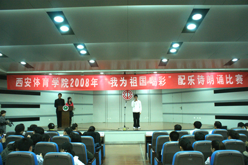 本次配乐诗朗诵比赛是我院“纪念改革开放30周年”系列活动之一,选手们围绕“我为祖国喝彩”的主题,用体育人自己的话语对中国改革开放30年的巨大变化送上诚挚的祝福,对中国体育30年的大突破、大发展抒发了西体学子的自豪与骄傲。选手们均发挥了较高的水平,嗓音各具特色,表情自然,精神饱满,充分展现出不俗的朗诵水平,有的慷慨陈词,震天撼地,有的婉转倾诉,抚慰心灵,台下观众不时发出阵阵掌声。最终来自人文学系07级学生万齐家以自己的原创诗歌《西部之春》赢得9.60的全场最高分,夺得冠军;人文学系08级学生刘新宇、运动系05级学生兰涛、王靖获得第二名。