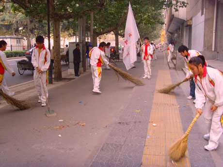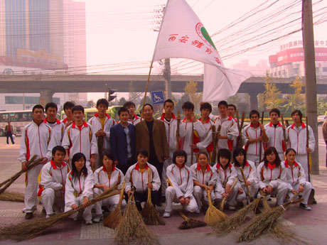 金秋十月,我院运动系近80余名同学在年级辅导员老师的带领下,积极参与了碑林区的创卫活动!对学院至区政府的人行道进行了彻底清扫。