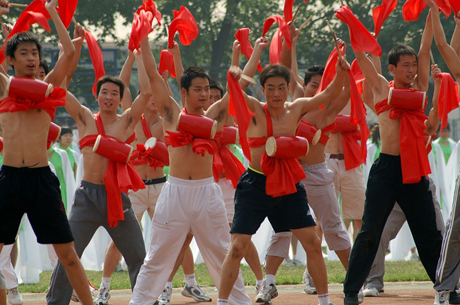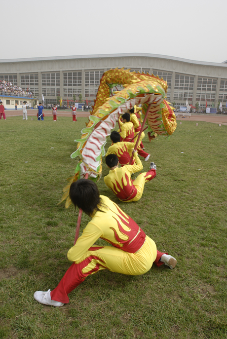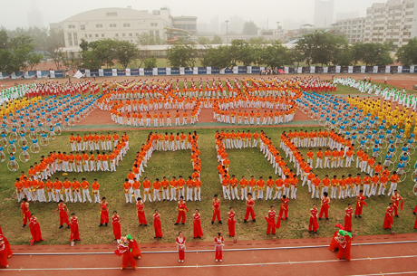 开幕式上,我院1500名学生以《青春壮奥运》为主题的大型团体操表演共分为四场:《舞龙迎宾》、《放飞希望》、《激扬青春》和《奔向未来》,表演编排新颖、场面宏大,充分展现了当代大学生喜迎奥运的蓬勃朝气,受到与会者的高度赞扬。