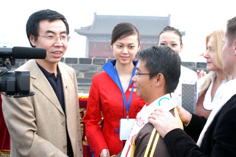 我院师生乘坐彩车参加了国内外奥运冠军、体育明星、文艺明星的西安大巡游活动,并分别在大唐芙蓉园和南门城墙迎接前来参加活动的奥运冠军。