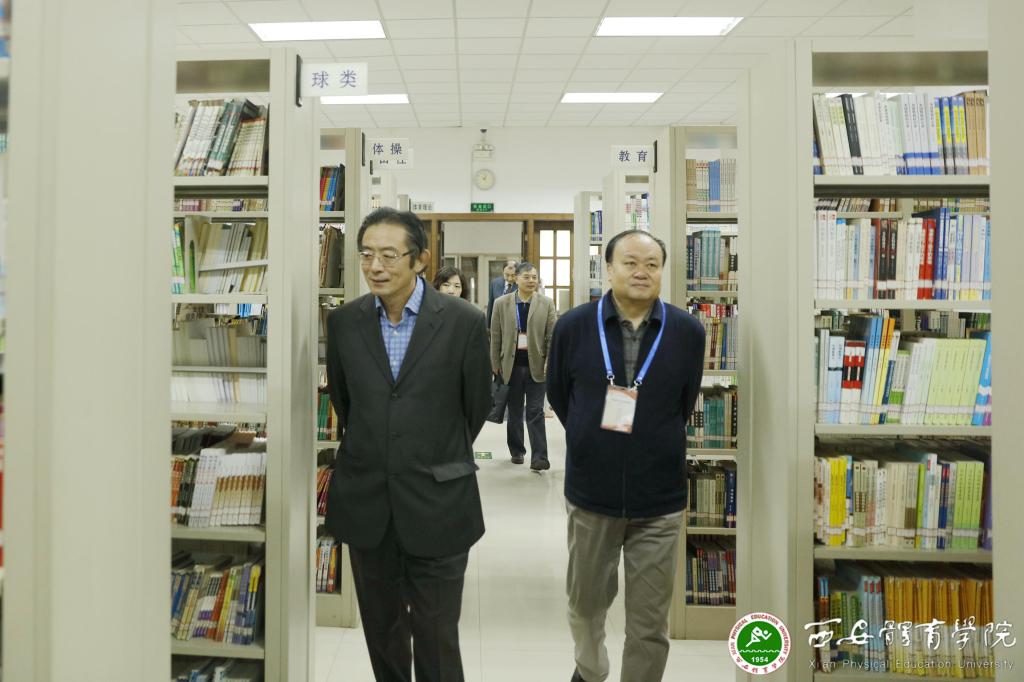 专家组杨桦、于剑、刘茂平、季浏、宁维卫等参观我院图书馆