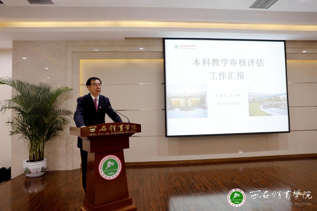 院长朱元利从学院简况、本科教学工作基本思路和主要措施、存在问题及努力方向等三个方面向专家组作了汇报。他介绍指出,学院在六十三载的发展过程中,传承优良办学传统和奥运精神、“西体精神”,紧密结合经济社会发展新趋势,确立了明晰的发展目标和办学定位,坚持“以体为本”,拓展挖掘传统优势体育专业内涵,实施专业课程“专、精、深”改革,提升师资队伍建设水平,提升教育教学质量,创新实践教学环节,为国家培养了众多的优秀体育人才。与此同时,学院也清醒地认识到,在以提升质量为核心的内涵式发展道路上还任重道远,本科教学工作依然存在着一些短板和不足,学校高水平师资队伍建设需要持续加强,办学条件有待进一步改善,系部在人才培养工作中的主体地位需要进一步落实,教育国际化水平有待提升。他表示,学院将全力配合专家组的工作,全面、真实、充分地展示学院建设状态,虚心听取专家的意见和建议,真诚期待各位专家为学院全面体检、把脉会诊,指导学院进一步提高办学治校和人才培养水平。