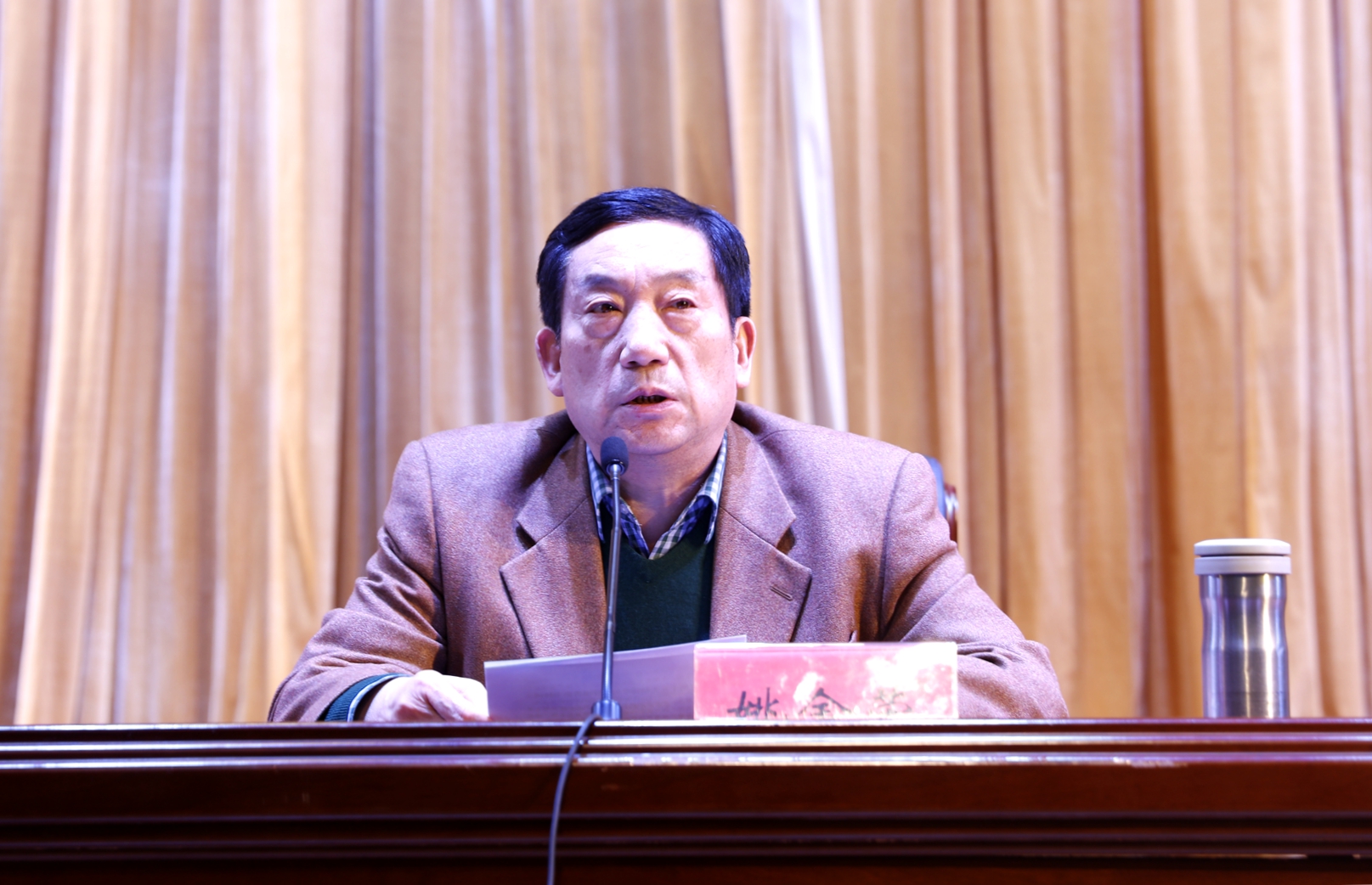 杨三省教授从党的十九大的主题及主要成果,习近平新时代中国特色社会主义思想,过去五年的历史性成就和历史性变革,中国特色社会主义进入新时代,我国社会主要矛盾的变化,两个一百年奋斗目标的战略部署,我国经济发展重大战略部署,坚定不移推动全面从严治党等八个方面,对党的十九大精神作了全面解读和深刻阐释。杨三省教授指出,要按照省委“抓首要,大学习,促发展”要求,把学习贯彻党的十九大精神引向深入,不断开创各项工作新局面。
