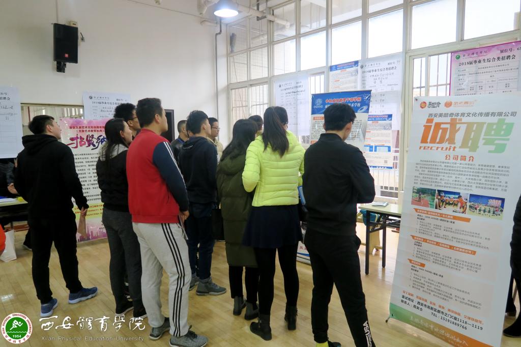 本网讯 11月25日,我院2018届毕业生综合类校园招聘会在艺术馆一楼隆重举行。全国102家单位参会,体育相关企业及省外用人单位的比例逐年增多,共涉及教育、管理、传媒、艺术等多个行业,为我院毕业生提供就业岗位2700多个。副院长文立新、学工部部长王志刚、各系(部)负责人、年级辅导员也到会调研指导。