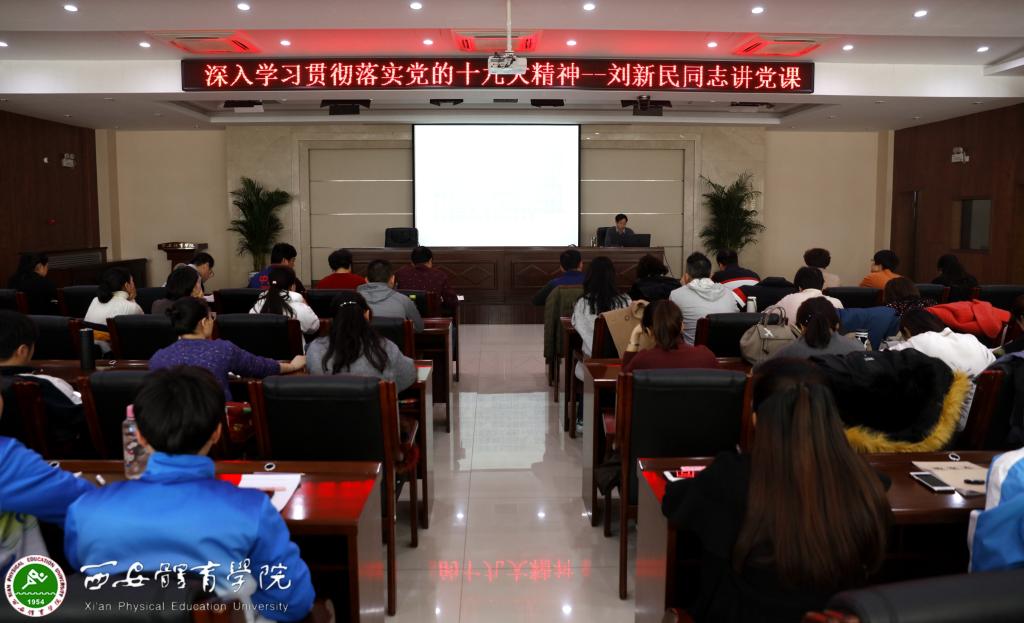 刘新民讲解了十九大报告中新时代、新矛盾、新思想和新目标的内涵和意义。他指出,新形势下我国社会主要矛盾的转化反映在教育上,则是人民群众对教育需求的质量型转变,这就要求高校加快对人才培养方式的改革和创新,走内涵式发展的道路,进一步提升人才培养质量。党的十九大报告提出:“建设教育强国是中华民族伟大复兴的基础观察,必须把教育事业放在优先位置,加快教育现代化,办好人民满意的教育”,强调人的全面发展,明确要求“把教育事业放在优先位置”,“加快一流大学和一流学科建设,实现高等教育内涵式发展”,这些要求为我院在新形势下如何办好人民满意的高质量专业体育学院指明了奋斗目标,提供了根本遵循。
