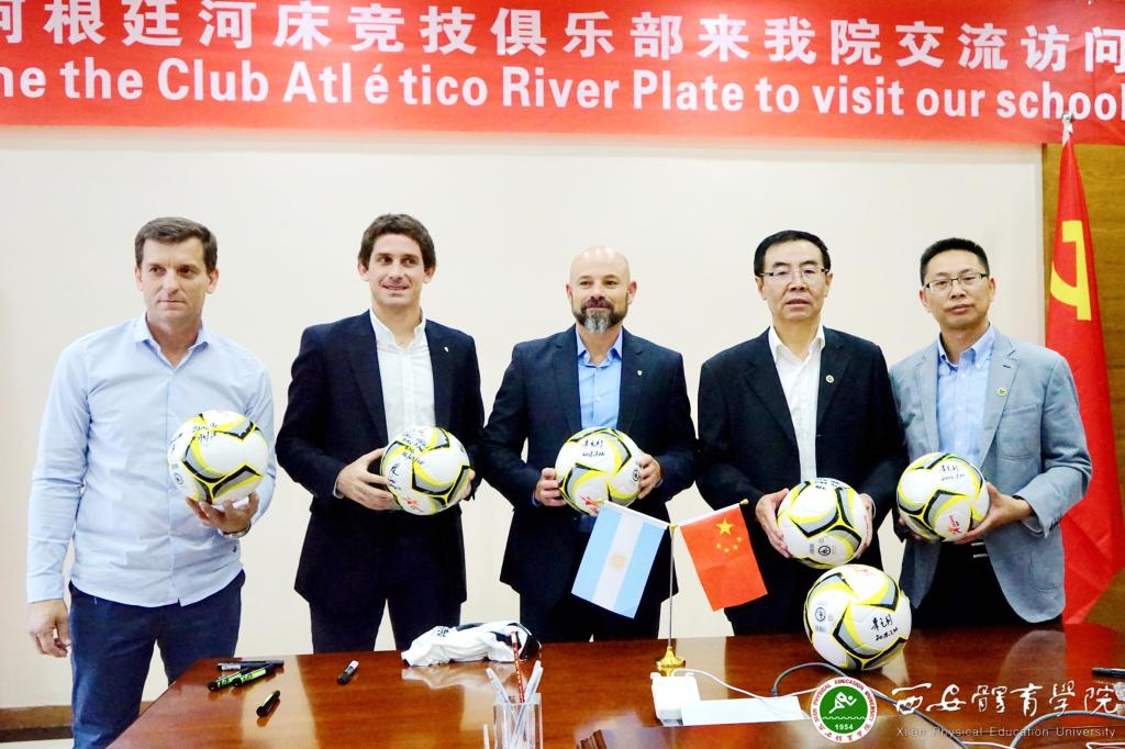 朱元利与“谁是球王”合作团队阿根廷河床竞技足球俱乐部代表交流合影