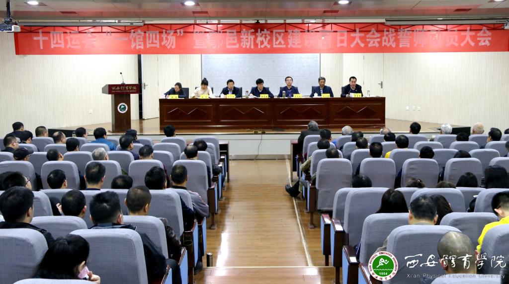 本网讯 3月23日,我院在教学楼一楼报告厅召开十四运会“一馆四场”暨鄠邑新校区建设誓师动员大会。党委书记黄道峻、院长朱元利、党委副书记刘子实、副院长文立新、纪委书记赵军、副院长李富生、副院长谢英出席。会议由朱元利主持。