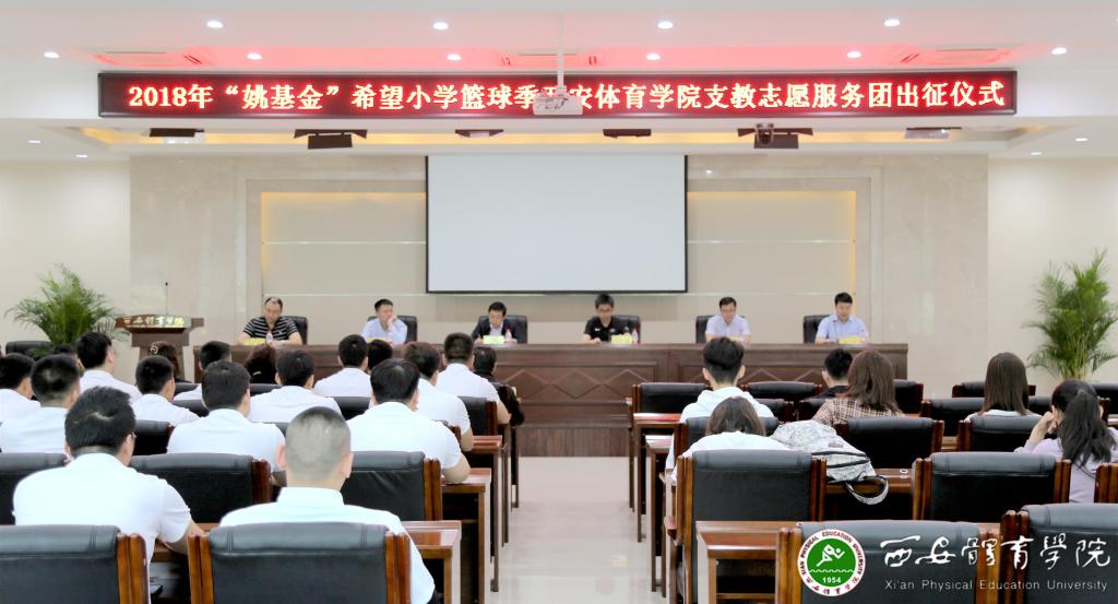 2018年“姚基金”希望小学篮球季beat365唯一官网支教志愿者服务团出征仪式在我院2号办公综合楼六楼报告厅举行