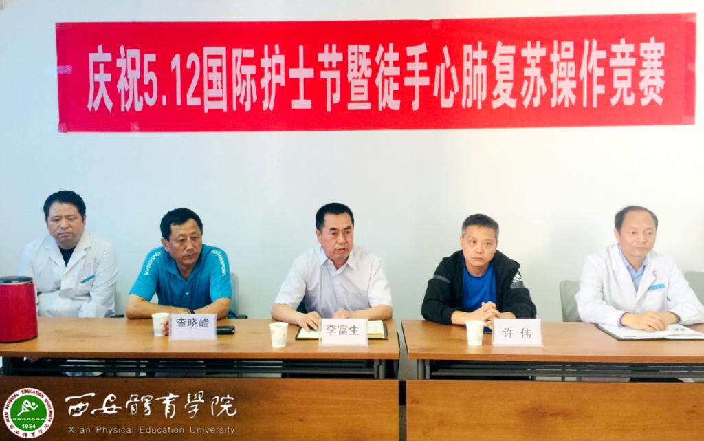 本网讯 为纪念第107个国际护士节,弘扬南丁格尔精神,提升校医院医护人员急救能力,同时展现校医院医护人员良好的精神风貌,在后勤管理处和院工会的协调和支持下,5月11日下午,由校医院护理部组织开展了庆祝国际护士节暨单人徒手心肺复苏操作竞赛活动。副院长李富生出席,后勤管理处处长许伟、院工会主席查晓峰参加本次活动。