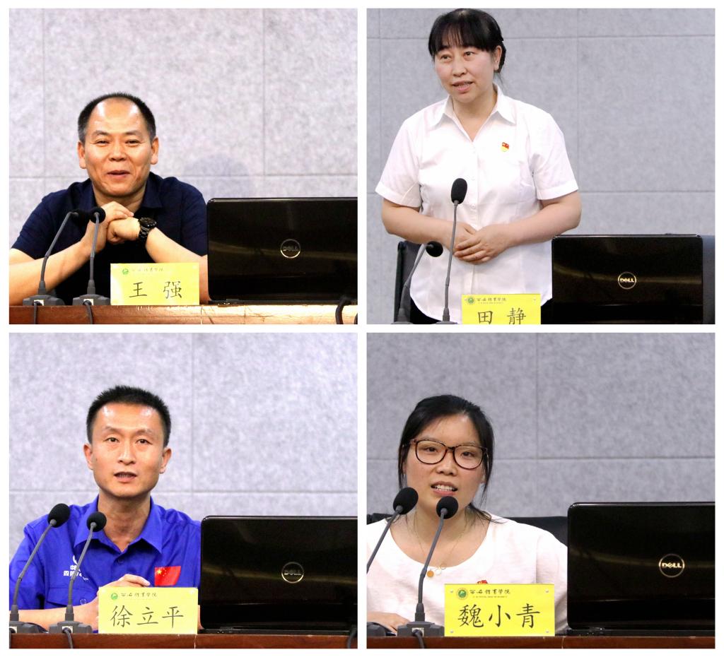 王强(左上)、田静(右上)、徐立平(左下)、魏小青(右下)分别结合自身工作实际进行宣讲