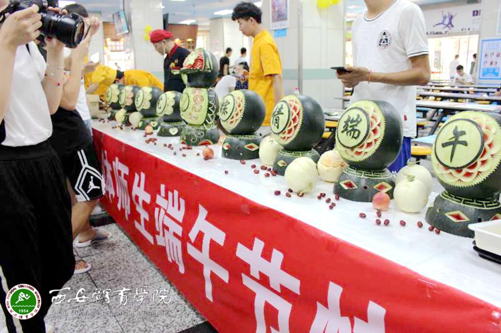 本网讯 为了让同学们度过一个欢乐祥和的端午节,6月14日,我院餐饮中心联合学生会在食堂一楼晏皇餐厅共同主办了“棕情端午,青春有你不一样”端午美食节活动。11时30分,伴随着同学们热情欢呼声,主持人宣布活动正式开始。本次活动共有五个内容,分别是“吃西瓜比赛”“粽子免费吃”“印度飞饼”“精美食品雕刻表演”以及“端午纪念品发放“,在吃西瓜比赛中,参赛选手争先恐后,笑语欢声;随后,同学们对食堂所提供的粽子进行品尝,并自己动手包粽子,结束后综合色、香、味对粽子进行评比。在印度飞饼和食品雕刻表演中,食堂厨师为大家展示了精湛的技艺和刀工,赢得了满堂彩;最后工作人员为同学们发放了精美的端午纪念品。