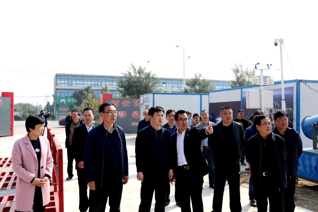 本网讯 10月12日上午,省体育局局长王勇、副局长张继学一行到我院就第十四届全运会“一馆四场”暨鄠邑新校区建设工作实地考察调研。院长朱元利、副院长李富生以及基建处处长甘泽军,新校区建设指挥部办公室主任马海涛、副主任朱舰,省体育局办公室主任张王平、场馆处处长郭文,鄠邑区副区长王值等陪同调研。