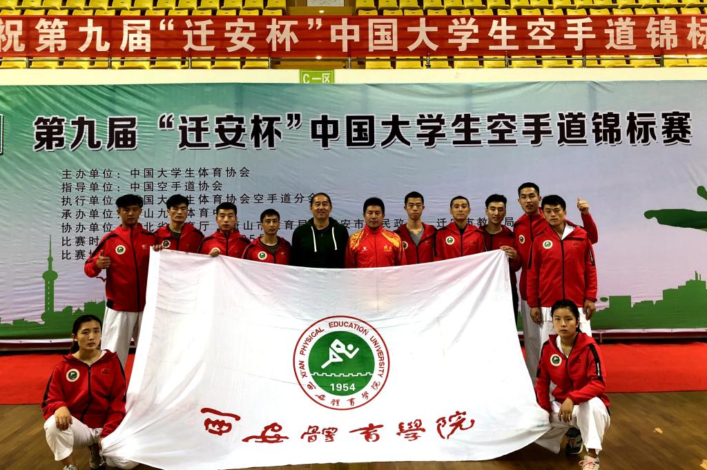我院大学生空手道代表队11名队员经过3天激烈比拼,共获得1金、2银、3铜和1个团体混合型第三的好成绩。其中,体育教育系2015级谢鹏获男子组手-79kg级冠军,研究生部2017级李浩楠获男子组手-59kg级亚军,体育教育系2017级曹琼琼获女子组手-49kg级亚军,研究生部2017级桑国鹏获-63kg级季军,体育教育系2016级袁佳晨获男子-79kg级季军,体育教育系2016级赵尚杰获男子+79kg级季军。
