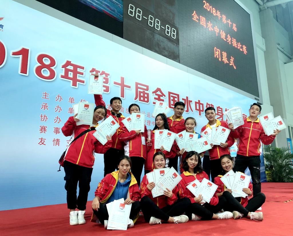 本网讯 11月4日,由国家体育总局游泳运动管理中心、中国游泳协会主办的“博威杯”2018年第十届全国水中健身操比赛圆满落幕。我院代表队获得3金1铜以及团体总分第三的好成绩,并获体育道德风尚奖。