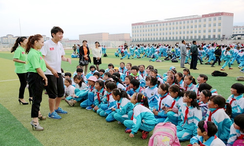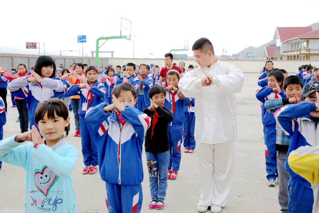 我院志愿者为门源县青石嘴中心完全小学学生指导武术基本动作