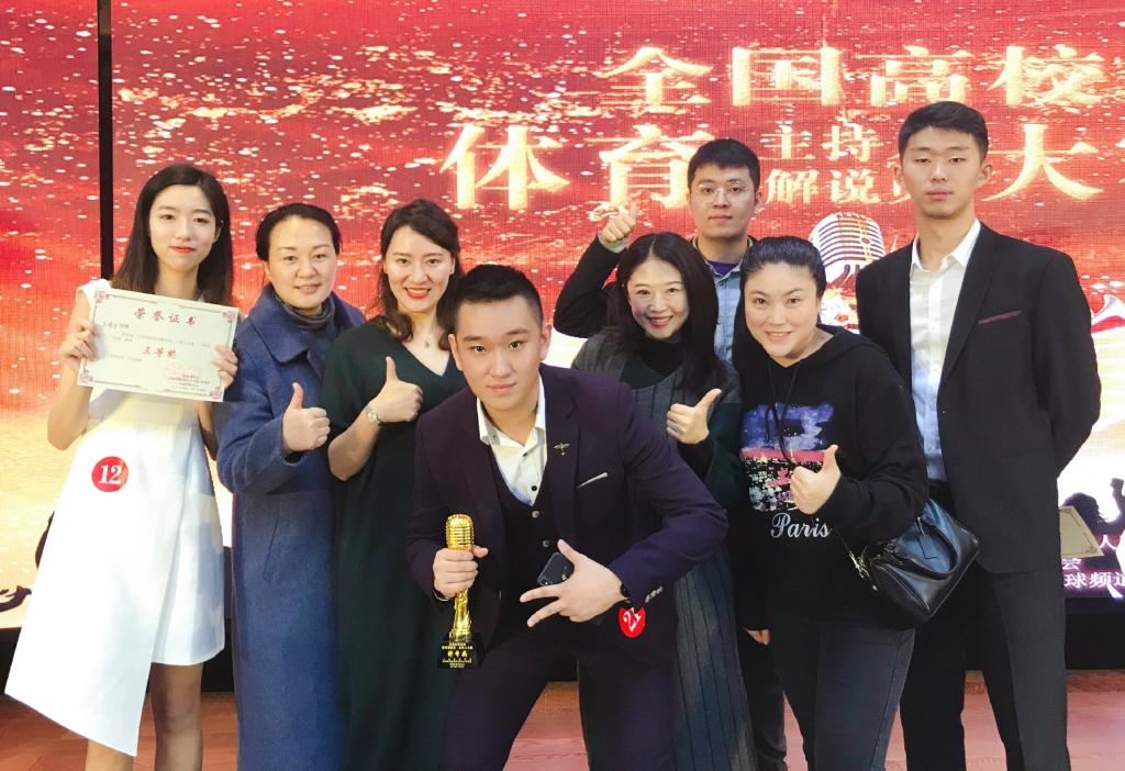 我院学生张旭(中)获首届全国高校体育解说、主持人大赛特等奖