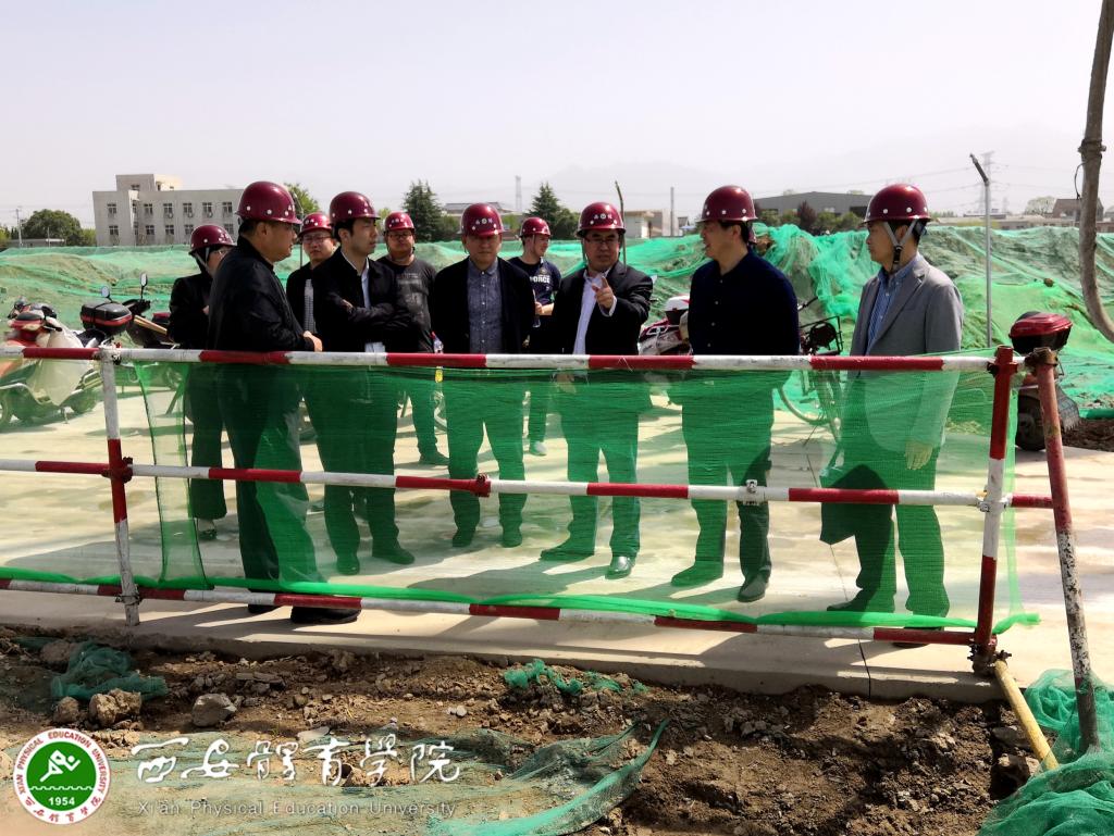 本网讯 近日,省发改委副主任、十四运筹委会场馆建设部驻会副部长朱昱,省发改委社会处调研员、十四运筹委会场馆建设部综合处处长杨海鹏,省体育局场馆处处长、十四运筹委会场馆建设部工艺处处长郭文,省自然资源厅土地利用管理处副处长鲁凡等赴我院鄠邑新校区实地调研十四运场馆建设情况。我院副院长李富生以及基建处处长甘泽军、鄠建办主任马海涛等相关人员陪同。
