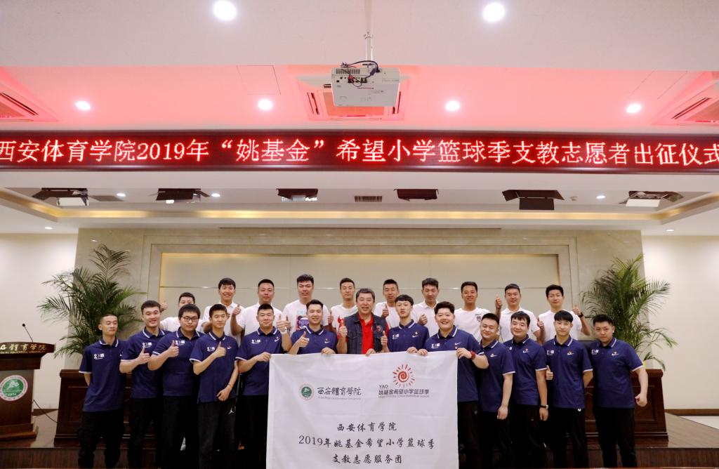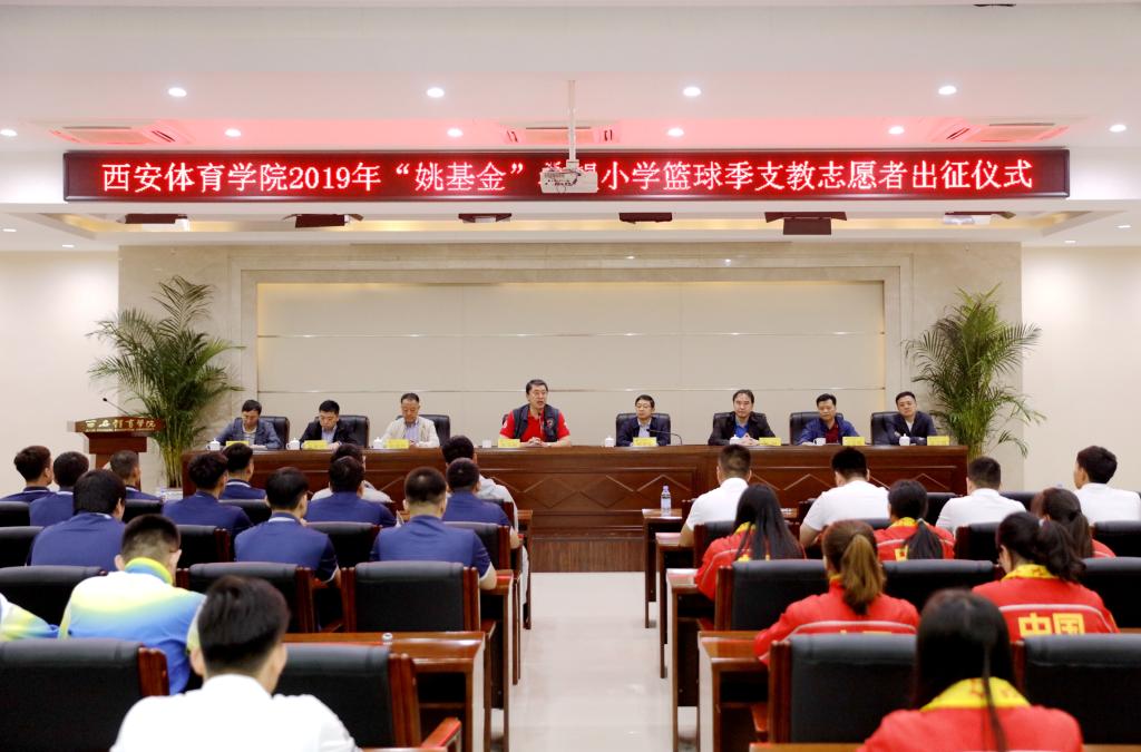 本网讯 5月14日上午,2019姚基金希望小学篮球季——beat365唯一官网支教志愿者出征仪式在2号办公综合楼报告厅举行。中国篮协副主席、陕西省篮协主席王立彬,团省委希望办主任、省青少年发展基金会理事长邬钢,我院党委副书记刘子实等出席,学院相关职能部门、系部领导以及学生代表近百人参加。