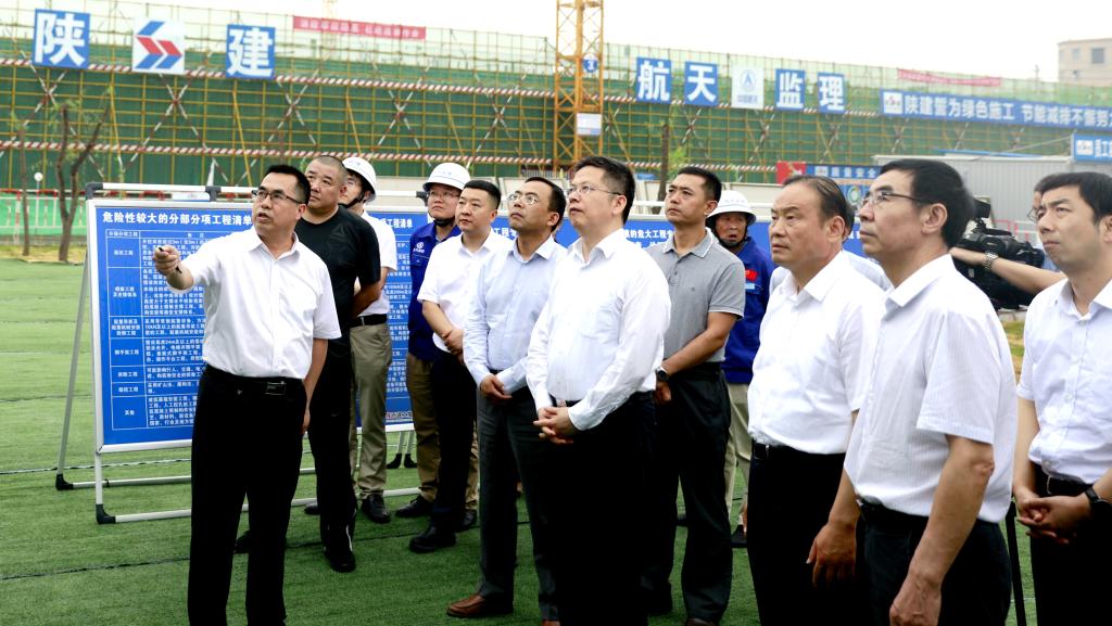 本网讯 6月19日下午,副省长、十四运会筹委会副主任兼秘书长方光华莅临我院鄠邑新校区调研检查“一馆四场”项目施工进度,询问了存在的困难并现场协调解决相关问题。省政府副秘书长高阳、省体育局局长王勇、十四运会筹委会办公室驻会副主任张剑、十四运会筹委会场馆建设部驻会副部长朱昱、省发改委固定资产投资办公室主任常保平、西安市副市长强晓安等陪同调研检查。