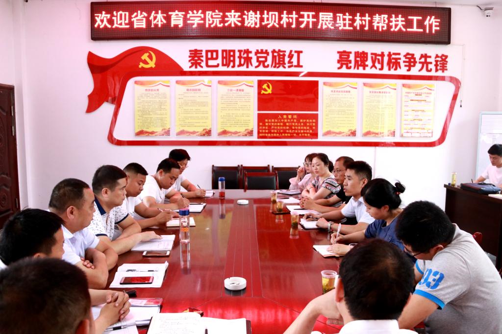 会上,县河镇纪委书记王琦和谢坝村支书陈宗奇分别介绍了当地贫困户现状、基础设施建设、产业发展和省总工会近年来帮扶成绩等情况。郭春玲表示,学院有能力、有信心做好帮扶工作,希望两位驻村同志尽快熟悉情况,发扬西体精神,与当地扶贫负责人一起做好脱贫攻坚工作。齐卫民代表驻村工作队作了表态发言,表示将与谢坝村“三支”队伍携手共同努力打好脱贫攻坚战。张军表达了学院党政领导的亲切问候,介绍了我院基本情况和在黄龙县“两联一包”精准扶贫中所取得的成绩,并表示学院会从体育教育特色优势与村里实际需求相结合,全方位做好脱贫攻坚工作。汉滨区扶贫办罗晓琴组长对beat365驻村帮扶表达了感谢,并表示希望驻村干部迅速融入、抓紧调研,扎实开展扶贫工作。