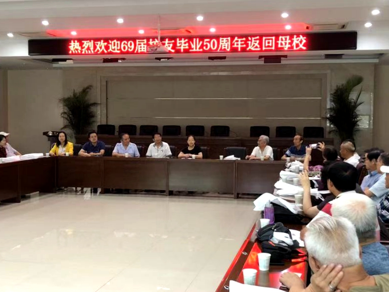 座谈会结束后,校友们在行政楼前合影留念,记录下这一难忘的时刻,随后共同参观了学校校史馆和部分教学场馆。忆往昔峥嵘岁月稠,看今朝鬓白夕阳红。五十年后的重逢,初心不改,热情依旧。别离之时,难舍难分,期待岁月静好,道声彼此珍重,祝愿学校的明天更加美好。